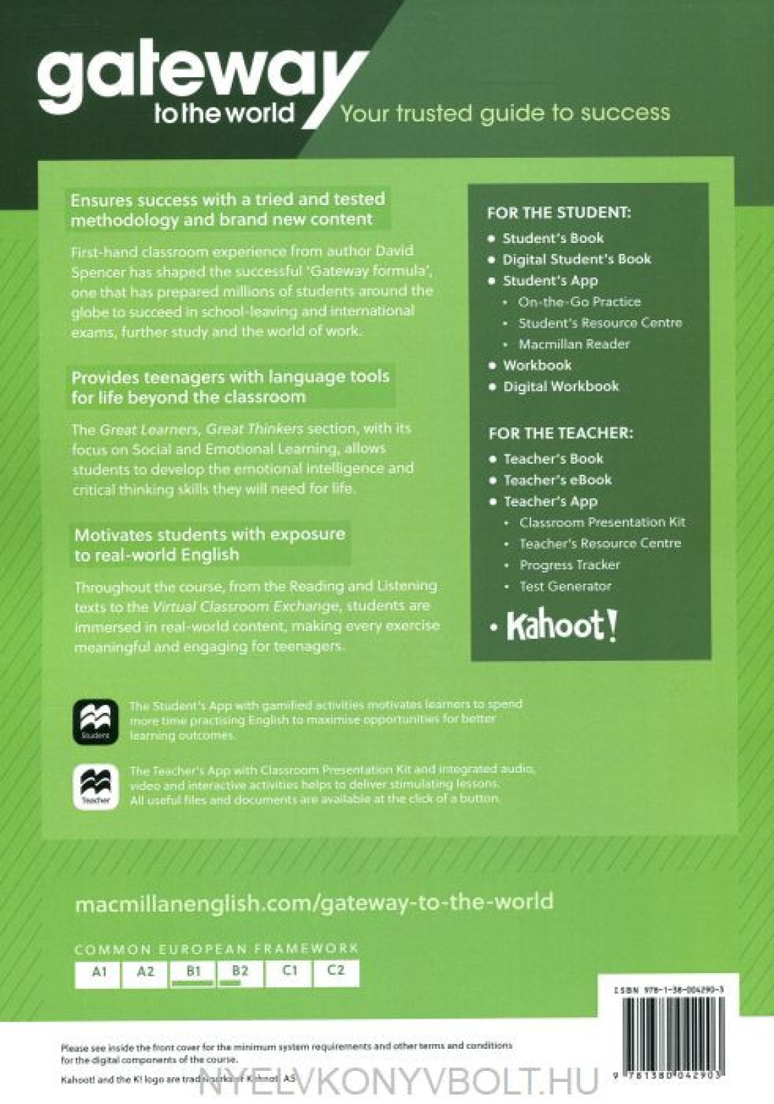 The successful ‘Gateway formula’ has prepared millions of students around the globe to succeed in the school-leaving and international exams, further study and the world of work. Thoroughly tested and perfected as a result of extensive research, Gateway to the World is full of fresh and relevant material for great lessons that will excite and motivate teenage learners and enable them to achieve their goals at school and in life.