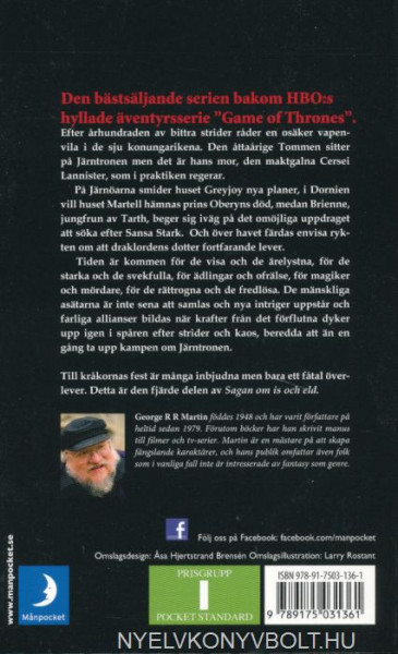 Efter arhundraden av bittra strider rader nu en osäker vapenvila. Robb Stark, Joffrey Baratheon, Renly Baratheon och Balon Greyjoy är alla döda och Joffreys blott attaarige bror Tommen regerar i Kungshamn under överinseende av sin mor, den maktgalna Cersei Lannister som har manga liv pa sitt samvete.Men kampen om makten över de sju konungarikena är inte slut. Stannis Baratheon har farit till Muren, pa Järnöarna smider huset Greyjoy nya planer, i Dornien vill huset Martell hämnas prins Oberyns död, medan Brienne, jungfrun av Tarth, beger sig iväg pa det omöjliga uppdraget att söka efter Sansa Stark. Och över havet kommer envisa rykten om att draklordens dotter fortfarande lever.Tiden är kommen för de visa och de ärelystna, för de starka och de svekfulla, för ädlingar och ofrälse, för magiker och mördare, för de rättrogna och de fredlösa. De mänskliga asätarna är inte sena att samlas och nya intriger uppstar och farliga allianser bildas när krafter fran det förflutna dyker upp igen i sparen efte