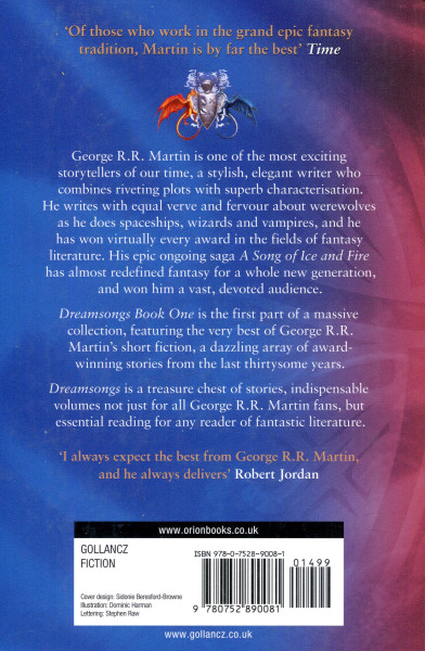 Dreamsongs Book One is the first part of a massive collection, featuring the very best of George R.R. Martin's short fiction, a dazzling array of award-winning stories from the last thirtysome years.