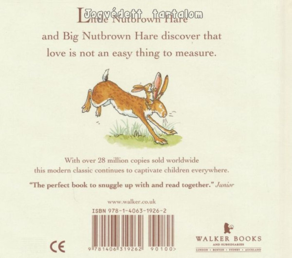 Guess how much I love you, says Little Nutbrown Hare. Little Nutbrown Hare shows his daddy how much he loves him: as wide as he can reach and as far as he can hop.