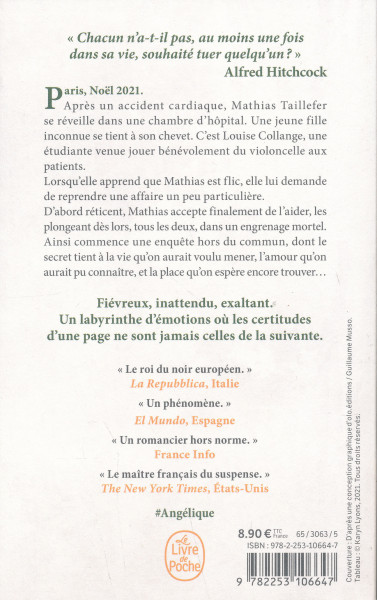 C’est Louise Collange, une étudiante venue jouer bénévolement du violoncelle aux patients. Lorsqu’elle apprend que Mathias est flic, elle lui demande de reprendre une affaire un peu particuliere. D’abord réticent, Mathias accepte finalement de l’aider, les plongeant des lors, tous les deux, dans un engrenage mortel. Ainsi commence une enquete hors du commun, dont le secret tient a la vie qu’on aurait voulu mener, l’amour qu’on aurait pu connaître, et la place qu’on espere encore trouver…