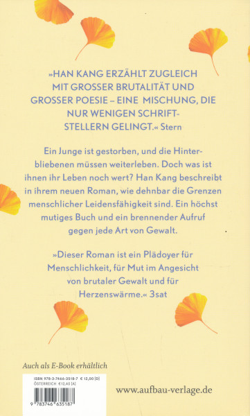 Ein Junge ist gestorben, und die Hinterbliebenen müssen weiterleben. Doch was ist ihnen ihr Leben noch wert? Han Kang beschreibt in ihrem neuen Roman, wie dehnbar die Grenzen menschlicher Leidensfähigkeit sind. Ein höchst mutiges Buch und ein brennenderAufruf gegen jede Art von Gewalt.