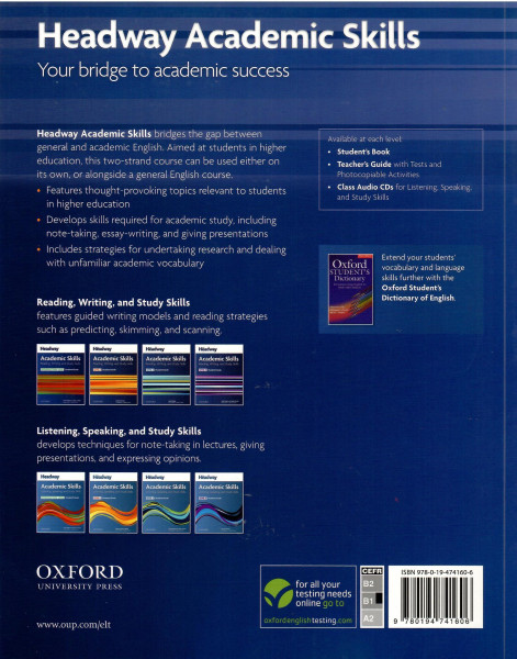 Headway Academic Skills can be used independently, or alongside a general English coursebook such as New Headway or New Headway Plus.<Enter>