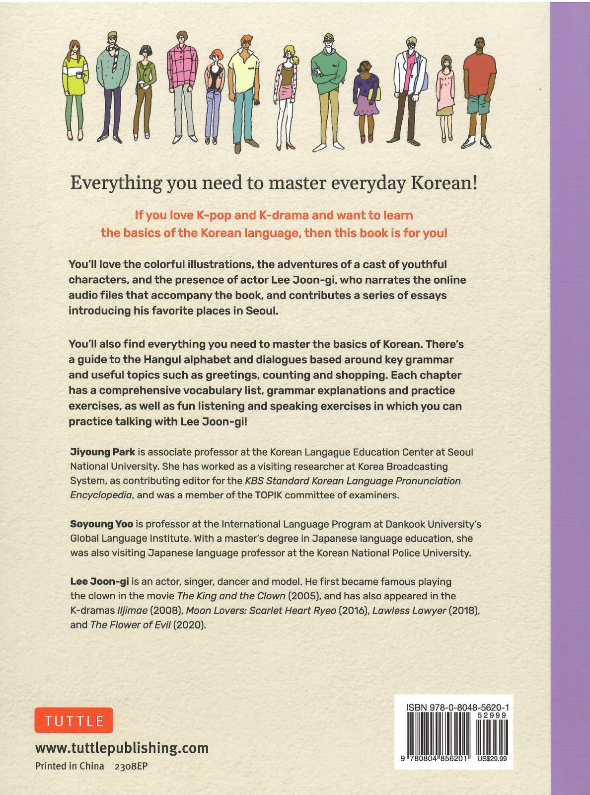 Korean is one of the fastest-growing second languages in the world, due to the huge popularity of Korean pop music, food and K-dramas. This book is designed to meet the needs of people who want to learn the language quickly and accurately—especially Korean pop culture fans!It features colorful drawings and a cast of youthful friends—Koreans and foreigners—who live in Seoul, hang out together, and have fun exploring the city. It also features Korean film and TV star Lee Joon-gi, who not only provides audio recordings of the dialogues, but contributes a series of stories about his favorite places and things to do in Seoul!