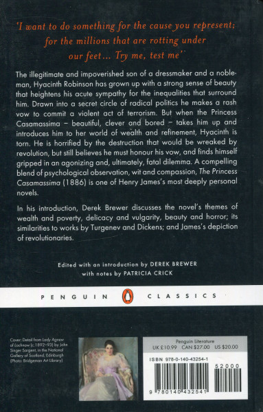 Brought up in poverty, Hyacinth has nevertheless developed aesthetic tastes that heighten his awareness of the sordid misery around him. He is drawn into the secret world of revolutionary politics and, in a moment of fervour, makes a vow that he will....