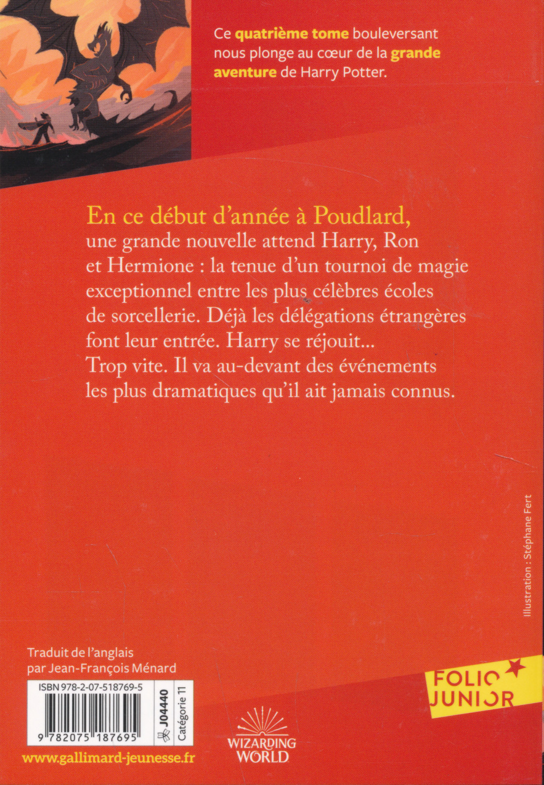 En ce début d'année a Poudlard, une grande nouvelle attend Harry, Ron et Hermione : la tenue d'un tournoi de magie exceptionnel entre les plus célebres écoles de sorcellerie. Déja les délégations étrangeres font leur entrée. Harry se réjouit... Trop vite. Il va au-devant des événements les plus dramatiques qu'il ait jamais connus.