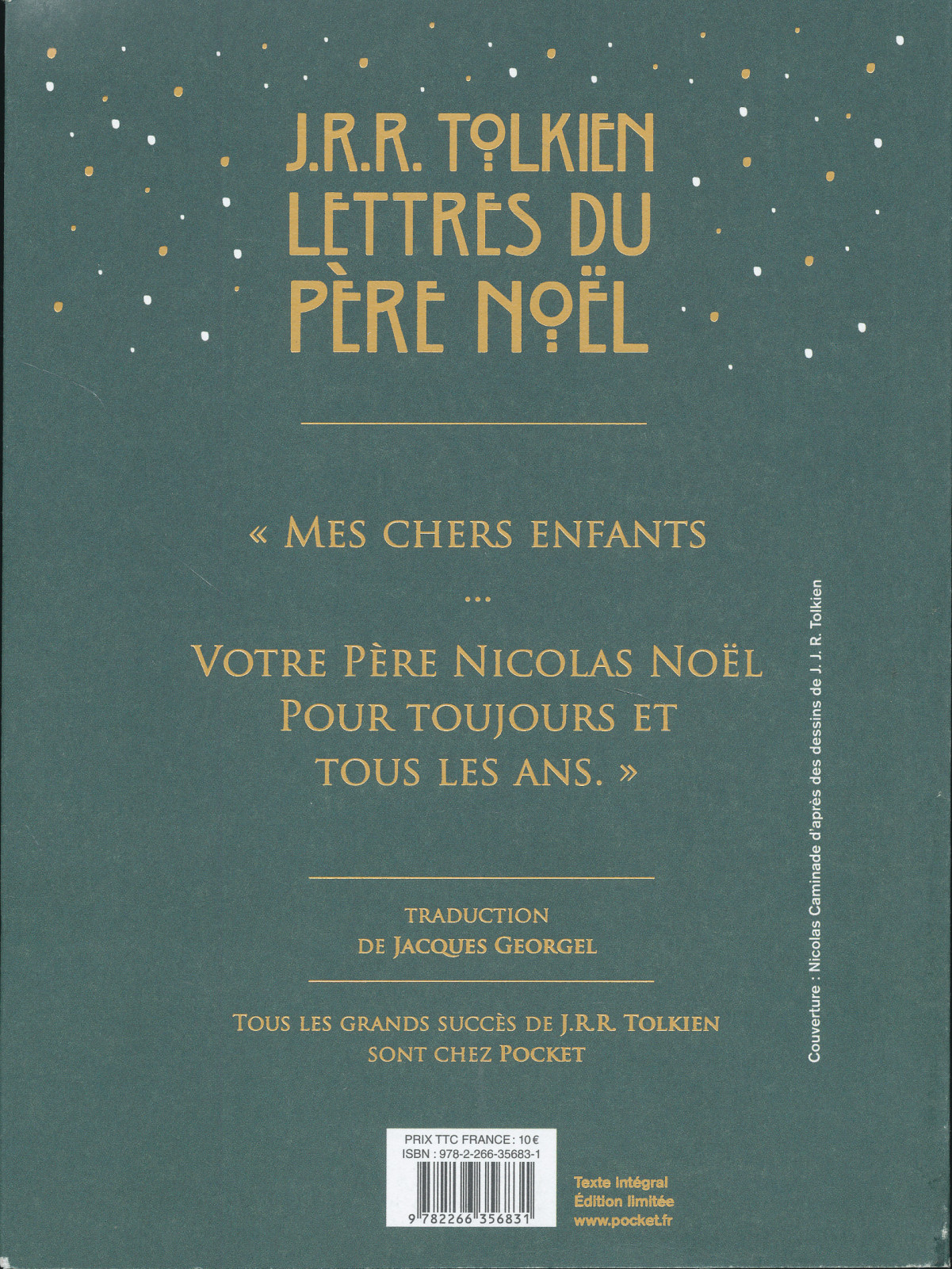 Plus connu pour ses travaux universitaires et pour l'invention de la Terre du Milieu, J.R.R. Tolkien est aussi un formidable auteur de contes pour enfants. Comme Bilbo le Hobbit et Roverandom, les Lettres du Pere Noël ont d'abord été destinées a ses trois fils et a sa fille, auxquels, chaque année entre 1920 et 1943, Tolkien a écrit une lettre – parfois deux – prétendument envoyée du pôle Nord par le Pere Noël ou l'Ours Polaire.Ces trente lettres et les dessins qui les accompagnent forment un récittres prenant des aventures de l'homme en rouge et a la barbe blanche, de son ours assistant, et de leurs démelés avec les gobelins. Un ouvrage qui plaira aux enfants, a leurs parents, et surprendra plus d'un amoureux de Tolkien.