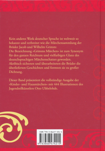 Die Geschichten von Königen und Bettlern, Tieren und Fabelwesen, Feen und Zauberern bringen menschliche Grunderfahrungen zum Ausdruck, deren Gleichniskraft den Märchen ihre Zeiten überdauernde Gültigkeit verleiht. Die von Kindern wie Erwachsenen geliebten Märchen wurden in fast alle Kultursprachen übersetzt und wirkten wie nur wenige literarische Zeugnisse auf Literatur, Kunst und Musik. Hier finden sie sich, textgetreu und in ihrer ursprünglichen Anordnung, vollständig in einem Band versammelt. Zahlreiche Illustrationen von Ludwig Richter und Moritz von Schwind schmücken die erlesene Ausgabe.
