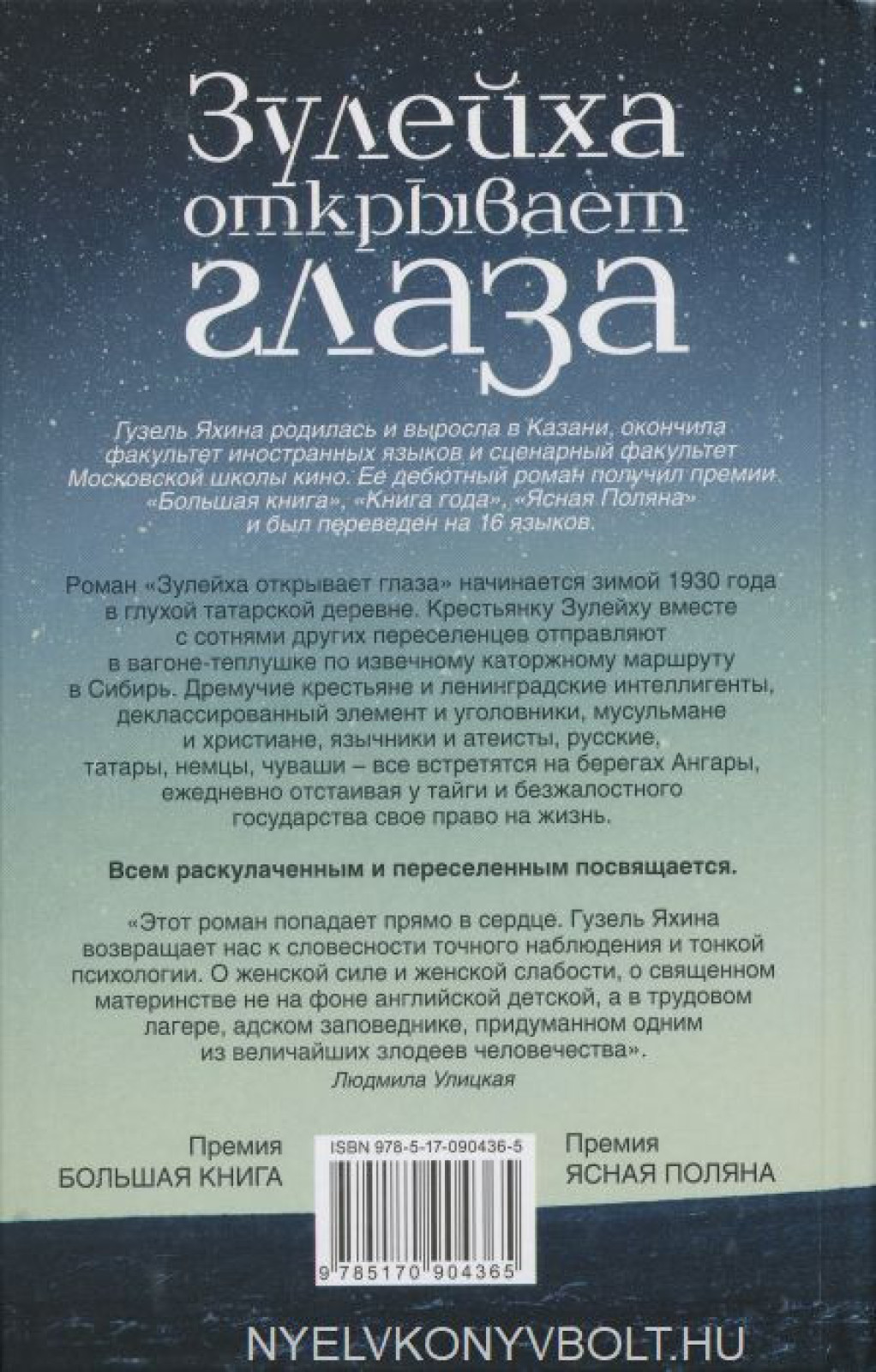 Roman "Zulejkha otkryvaet glaza" nachinaetsja zimoj 1930 goda v glukhoj tatarskoj derevne. Krestjanku Zulejkhu vmeste s sotnjami drugikh pereselentsev otpravljajut v vagone-teplushke po izvechnomu katorzhnomu marshrutu v Sibir.