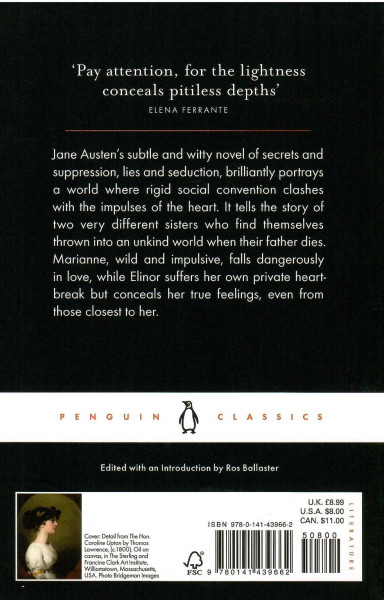 Meanwhile Elinor, always sensitive to social convention, is struggling to conceal her own romantic disappointment, even from those closest to her. Through their parallel experience of love - and its threatened loss - the sisters learn that sense must mix with sensibility if they are to find personal happiness in a society where status and money govern the rules of love.