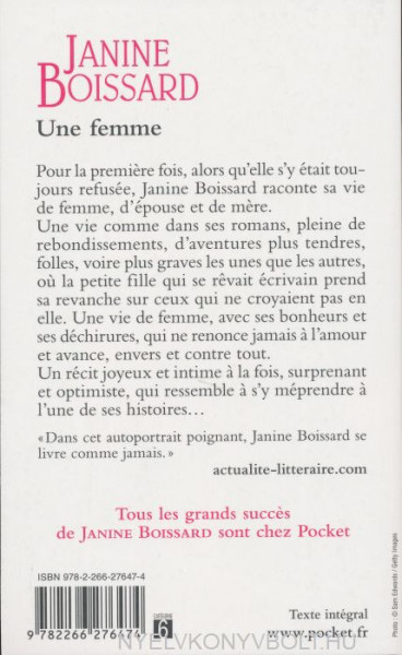 Pour la premiere fois, alors qu'elle s'y était toujours refusée, Janine Boissard raconte sa vie de femme, d'épouse et de mere. <Enter>