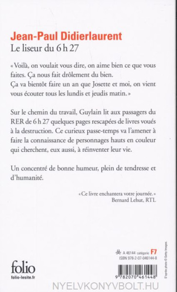Sur le chemin du travail, Guylain lit aux passagers du RER de 6h27 quelques pages rescapées de livres voués a la destruction. Ce curieux passe-temps va l'amener a faire la connaissance de personnages hauts en couleur qui cherchent, eux aussi, a réinventer leur vie. Un concentré de bonne humeur, plein de tendresse et d'humanité.
