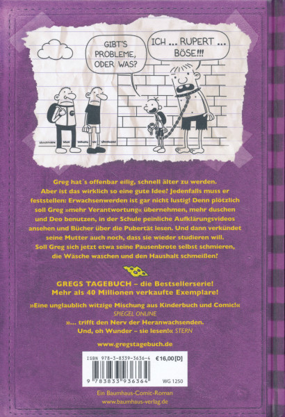 Greg hat?s offenbar eilig, schnell älter zu werden. Aber ist das wirklich so eine gute Idee?Jedenfalls muss er feststellen: Erwachsenwerden ist gar nicht lustig!