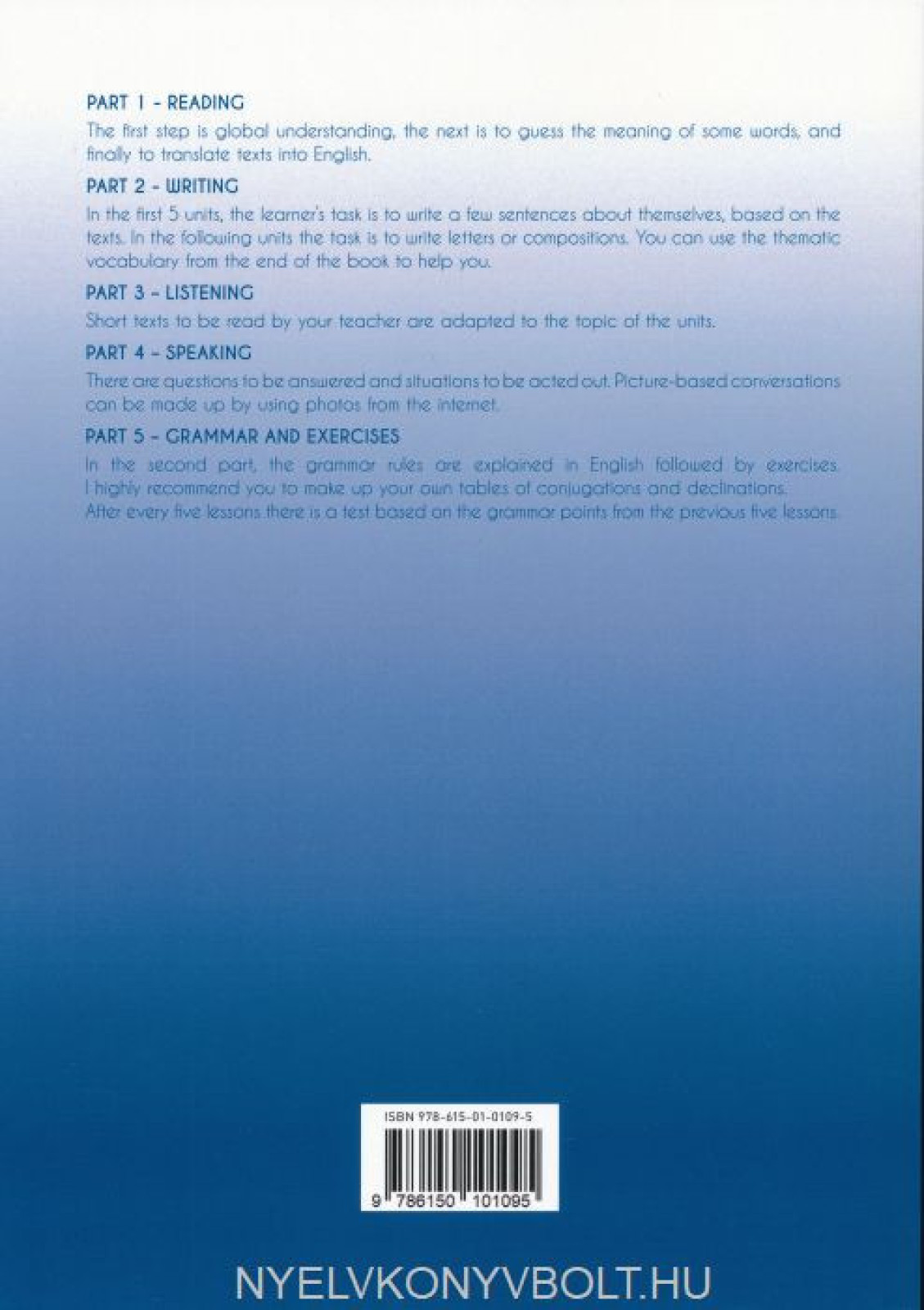 - Part 1 - Reading- Part 2 - Writing- Part 3 - Listening- Part 4 - Speaking- Part 5 - Grammar and Exercises
