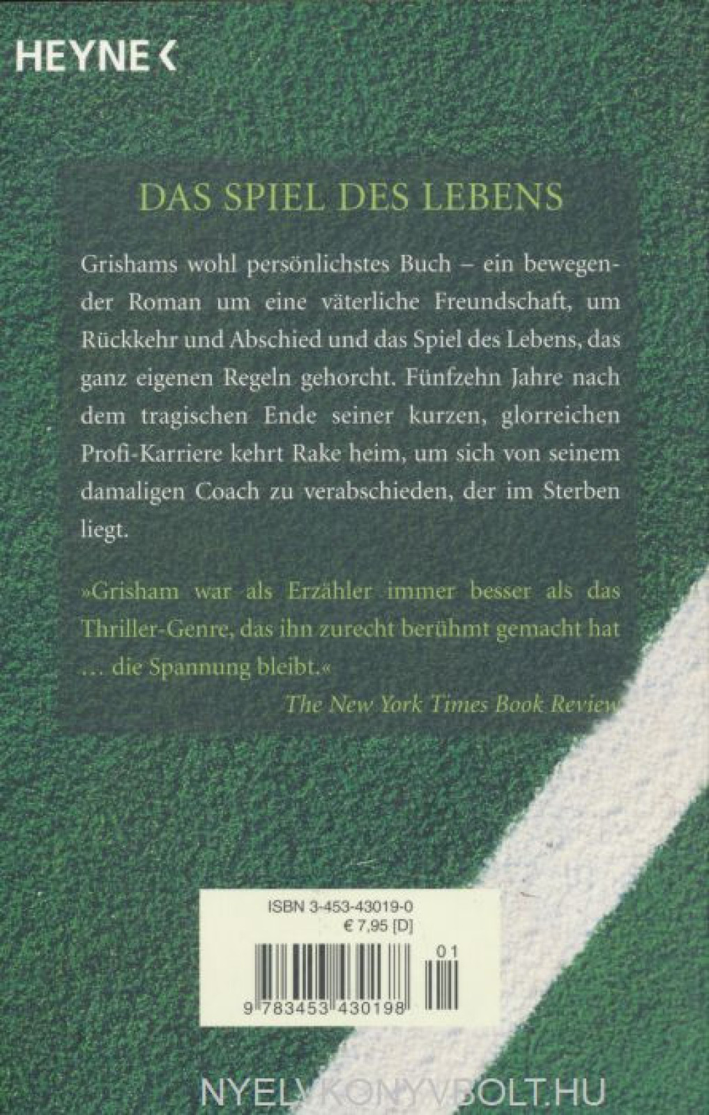 Grishams wohl persönlichstes Buch – ein bewegender Roman um eine väterliche Freundschaft, um Rückkehr und Abschied und das Spiel des Lebens, das ganz eigenen Regeln gehorcht.