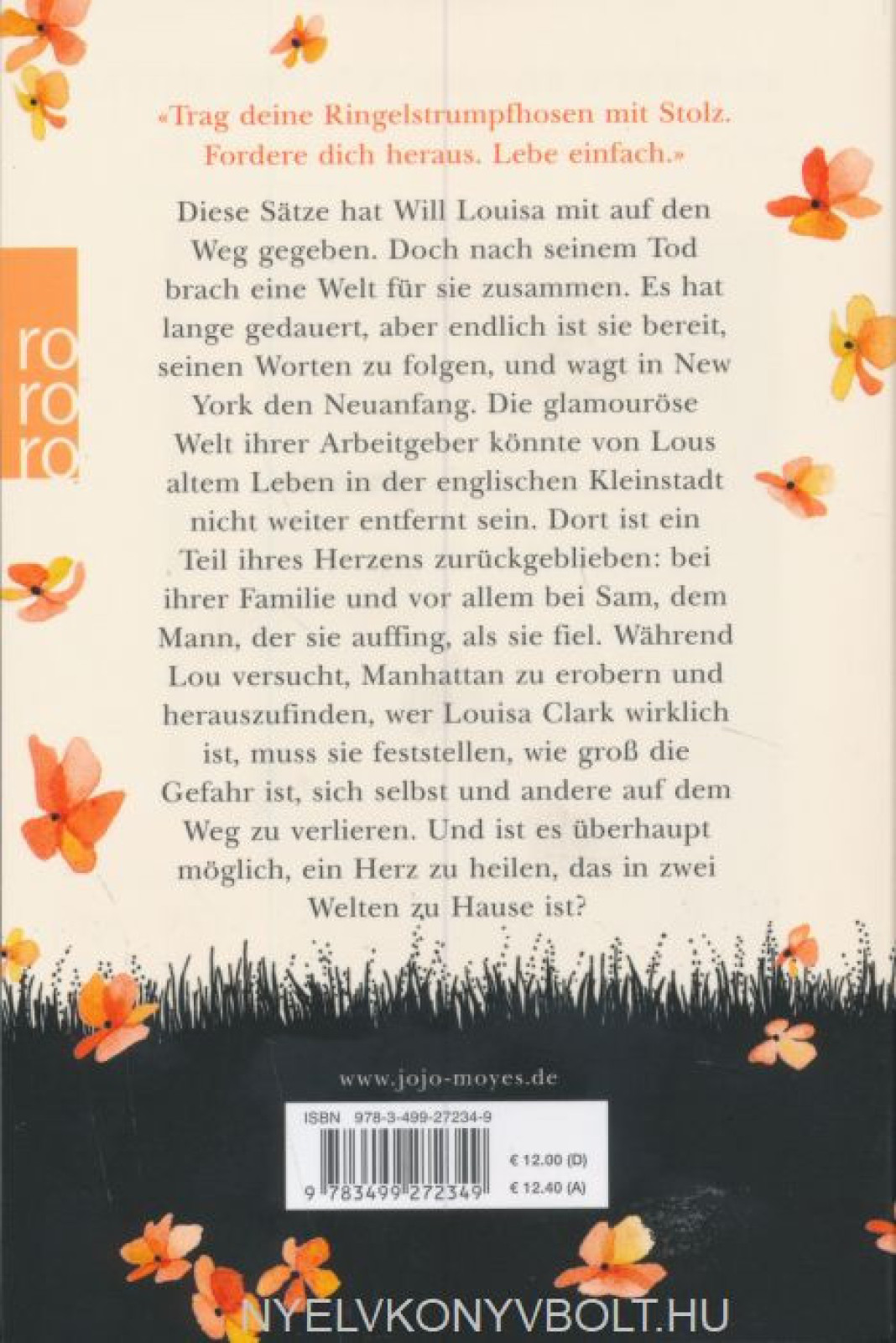 Es hat lange gedauert, aber endlich ist sie bereit, seinen Worten zu folgen und wagt in New York den Neuanfang. Die glamouröse Welt ihrer Arbeitgeber könnte von Lous altem Leben in der englischen Kleinstadt nicht weiter entfernt sein. Dort ist ein Teil ihres Herzens zurückgeblieben: bei ihrer liebenswert chaotischen Familie und vor allem bei Sam, dem Mann, der sie auffing, als sie fiel. Während Lou versucht, New York zu erobern und herauszufinden, wer Louisa Clark wirklich ist, muss sie feststellen, wie groß die Gefahr ist, sich selbst und andere auf dem Weg zu verlieren. Und am Ende muss sie sich die Frage stellen: Ist es möglich, ein Herz zu heilen, das in zwei Welten zuhause ist?
