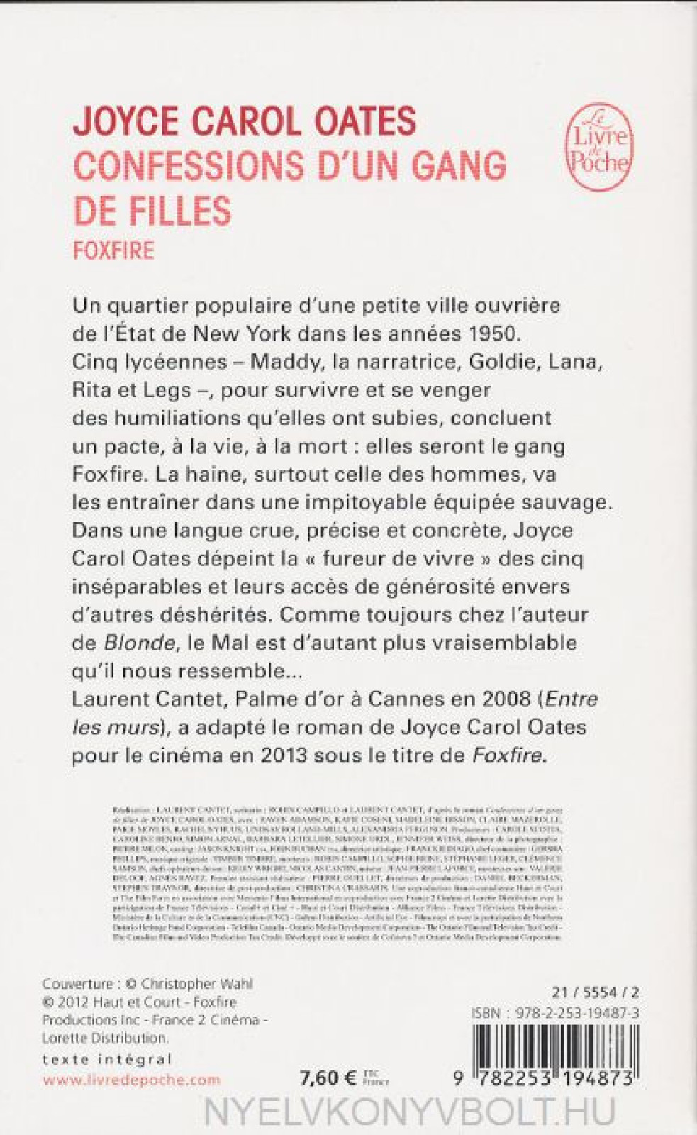 Un quartier populaire d'une petite ville ouvriere de l'État de New York dans les années 1950. Cinq lycéennes – Maddy, la narratrice, Goldie, Lana, Rita et Legs –, pour survivre et se venger des humiliations qu'elles ont subies, concluent un pacte, a la vie, a la mort : elles seront le gang Foxfire. La haine, surtout celle des hommes, va les entraîner dans une impitoyable équipée sauvage. Dans une langue crue, précise et concrete, Joyce Carol Oates dépeint la « fureur de vivre » des cinq inséparables etleurs acces de générosité envers d'autres déshérités. Comme toujours chez l'auteur de Blonde, le Mal est d'autant plus vraisemblable qu'il nous ressemble...