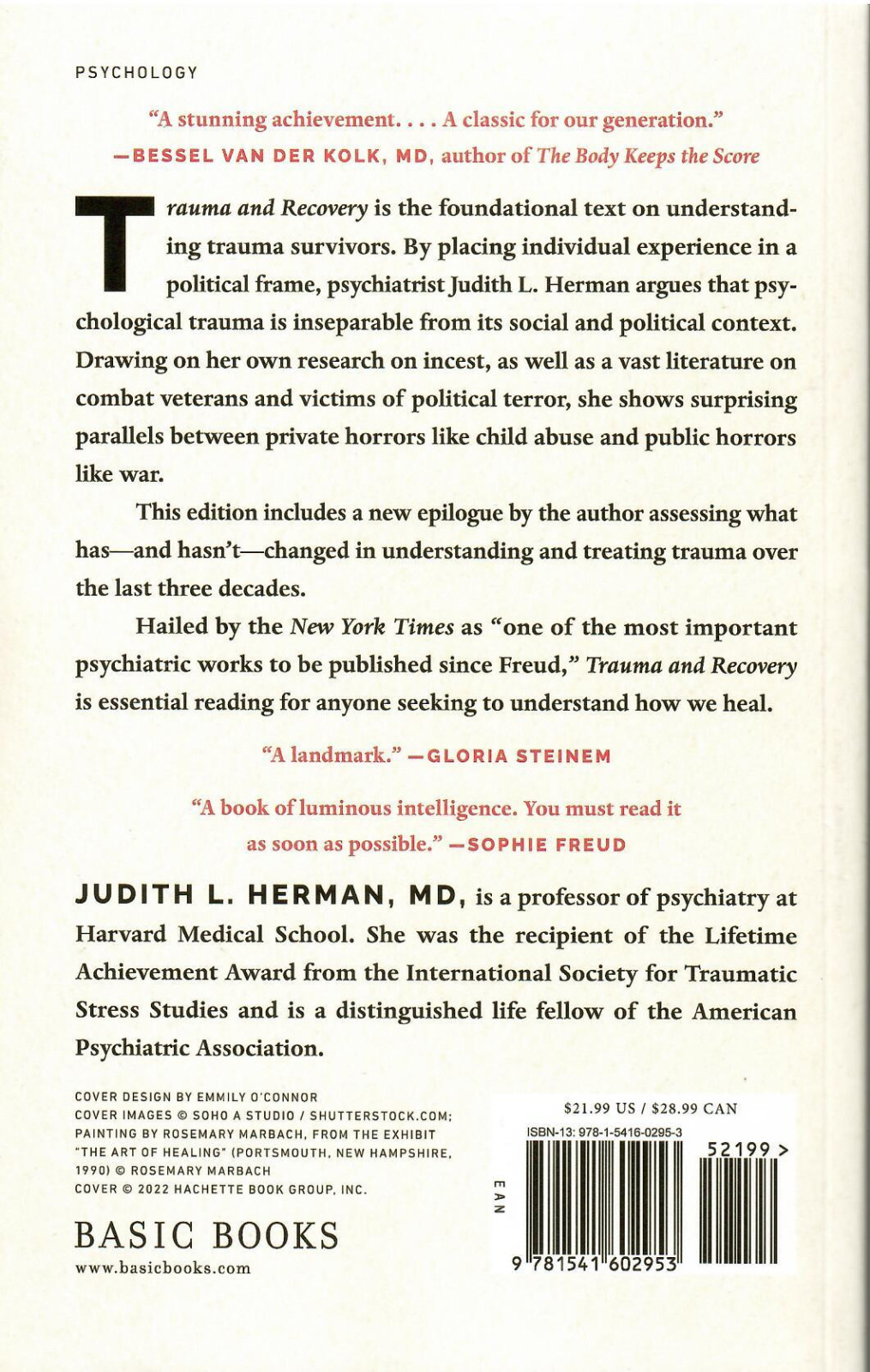 Trauma and Recovery is the foundational text on understanding trauma survivors. By placing individual experience in a political frame, psychiatrist Judith L. Herman argues that psychological trauma is inseparable from its social and political context. Drawing on her own research on incest, as well as a vast literature on combat veterans and victims of political terror, she shows surprising parallels between private horrors like child abuse and public horrors like war.This edition includes a new epilogue by the author assessing what has—and hasn’t—changed in understanding and treating trauma over the last three decades.Hailed by the New York Times as “one of the most important psychiatry works to be published since Freud,” Trauma and Recovery is essential reading for anyone seeking to understand how we heal.