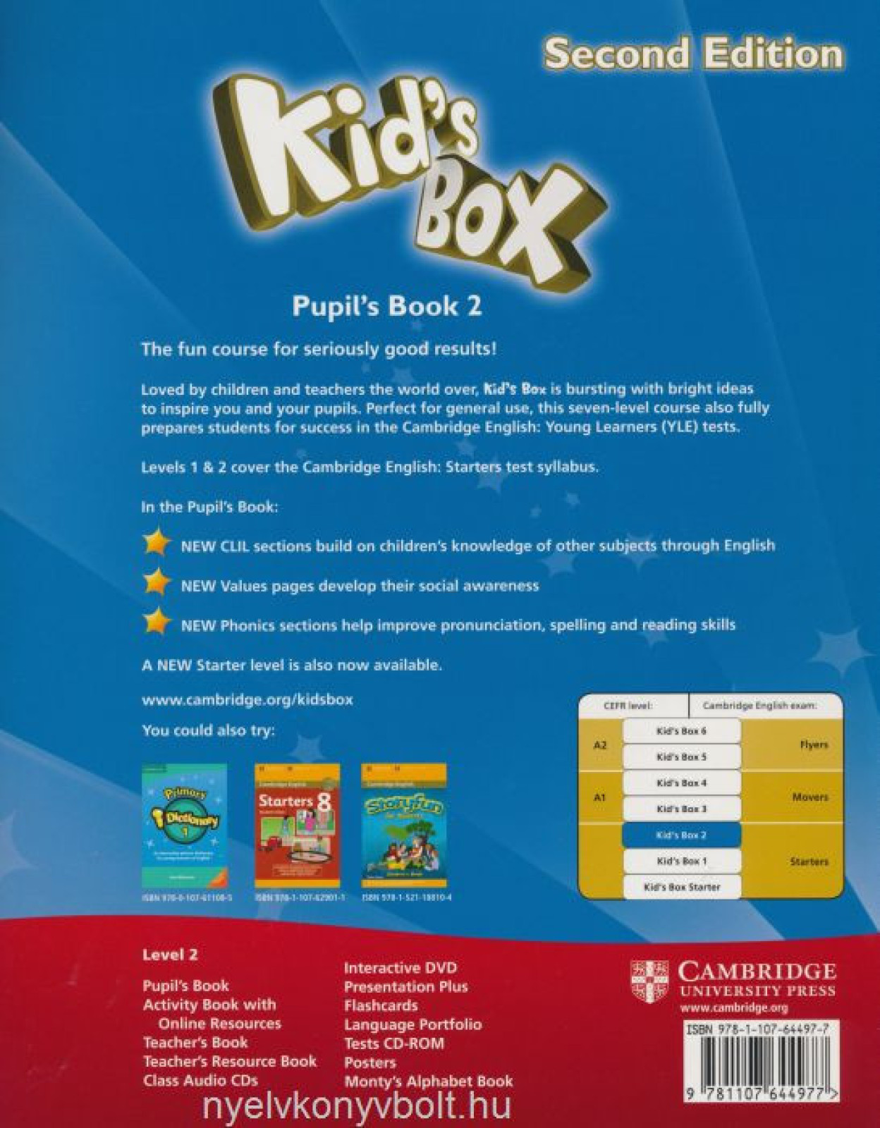 Well-loved by children and teachers the world over, Kid's Box is bursting with bright ideas to inspire you and your pupils. Perfect for general use, the course also fully covers the syllabus of the Cambridge Young Learners English (YLE) tests, preparingyour students for success at Starters, Movers and Flyers. The interleaved Teacher's Book contains comprehensive notes, as well as extra activities, photocopiable pages and classroom ideas to inspire both teacher and students.