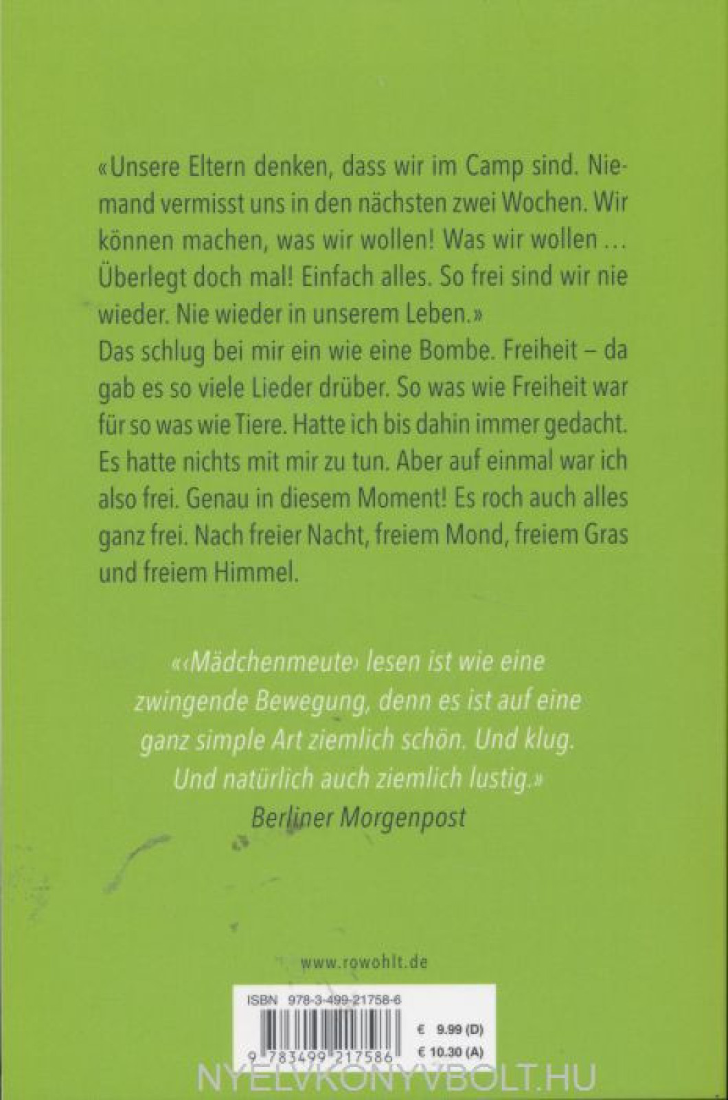 Nur widerwillig fährt Charlotte Nowak, fünfzehn und sehr schüchtern, mit sieben anderen Mädchen ins Sommerferiencamp. Doch dort ist schnell alles anders als erwartet: Dinge verschwinden, und als eines Morgens die Gruppenleiterin ausrastet, flüchten die Mädchen, klauen ein Hundefängerauto samt Hunden und fahren ins Erzgebirge, wo eine von ihnen einen alten Stollen kennt. Hier schlagen sie sich durch immer freiere, immer aufregendere und schönere Sommertage zwischen Waldabenteuern und nächtlichen Streifzügen zu Supermarkt-Containern. Charly Nowak merkt, dass sie nicht nur schüchtern ist – doch dann stoßen die Mädchen auf eine brisante DDR-Hinterlassenschaft, die Außenwelt holt sie ein, dann kommt auch noch die erste Liebe … und Charly muss das, was sie gerade an Mut und Freundschaft entdeckt hat, unter Beweis stellen.Mit hinreißender Direktheit und großer Wärme schildert Kirsten Fuchs Ängste und Hoffnungen und alles, was zu jeder neuentdeckten Freiheit dazugehört.