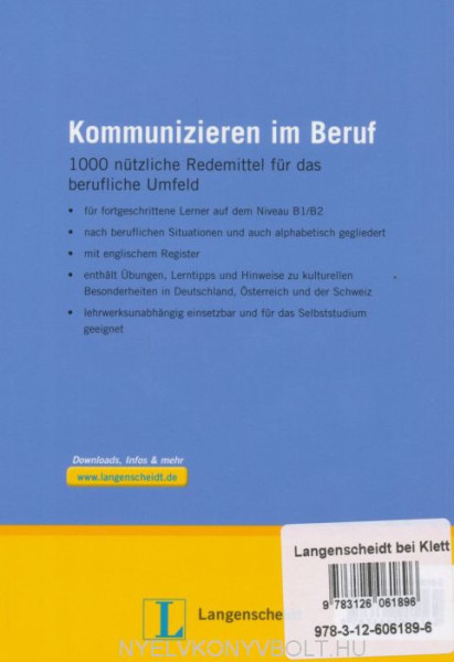 Dieses Redemittelbuch bietet neben den alphabetisch gelisteten Redewendungen ein Nachschlagesystem nach Szenarien in beruflichen und sozialen Kontexten mit englischer Übersetzung. Die Übungen werden ergänzt durch hilfreiche Lerntipps. Interkulturelle Besonderheiten werden thematisiert, um Missverständnisse zu vermeiden. Das Buch ist lehrwerkunabhängig einsetzbar und eignet sich auch für das Selbststudium.