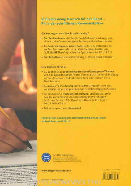 Das „Schreibtraining Deutsch für den Beruf“ vermittelt Fertigkeiten für die schriftliche Kommunikation in Ausbildung und Beruf. Ideal als berufsbezogenes Zusatzmaterial für Integrationskurse, an Berufsschulen oder in berufsorientierten Kursen für das Niveau A2/B1. Inklusive Kapitel "Bewerbungsschreiben". Übungen zum Textverständnis