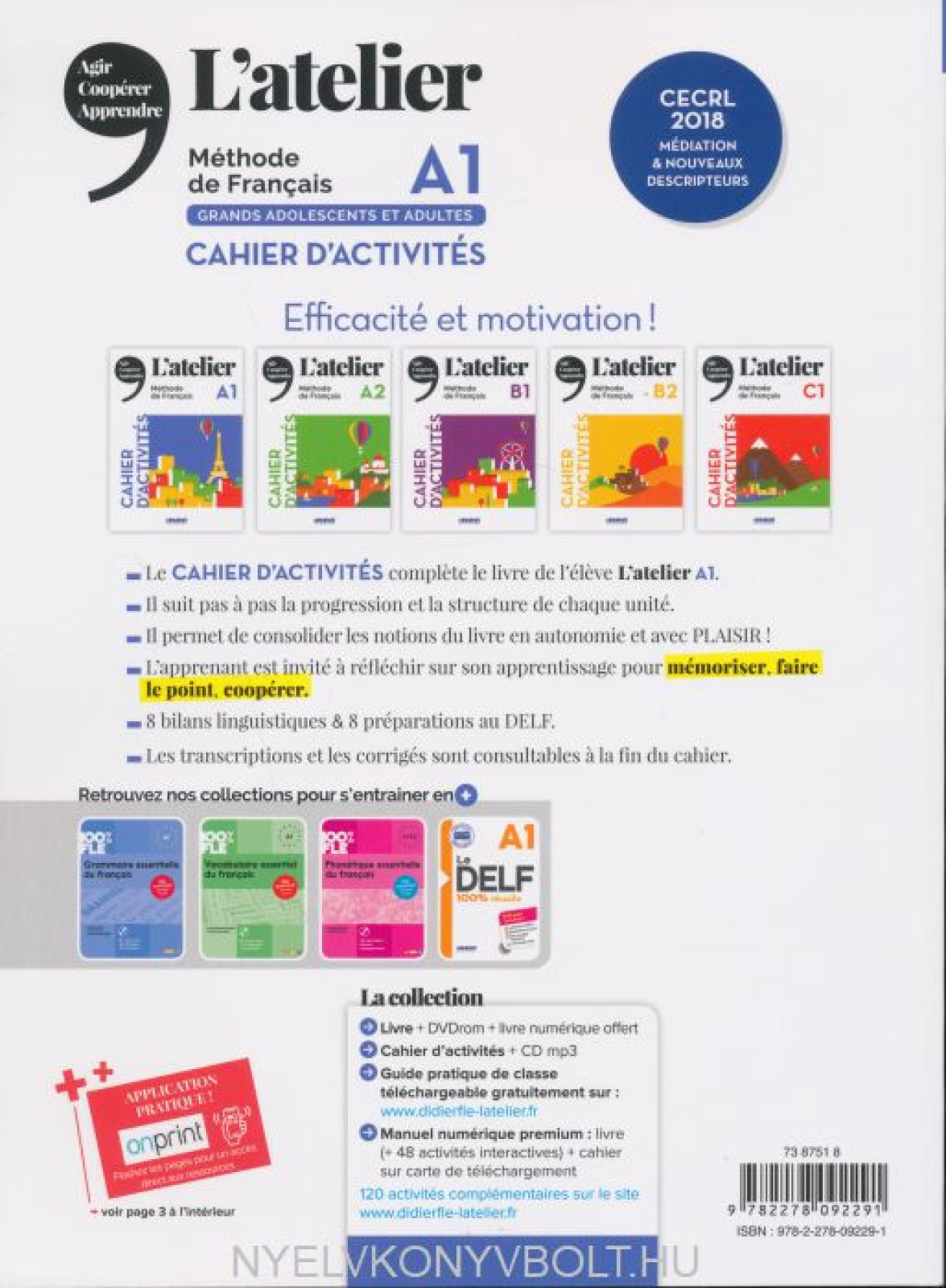 L’apprenant est invité a réfléchir sur son apprentissage pour mémoriser, faire le point et coopérer8 bilans linguistiques et 8 préparations au DELFLes transcriptions et les corrigés+ le CD mp3 : les activités de compréhension orale
