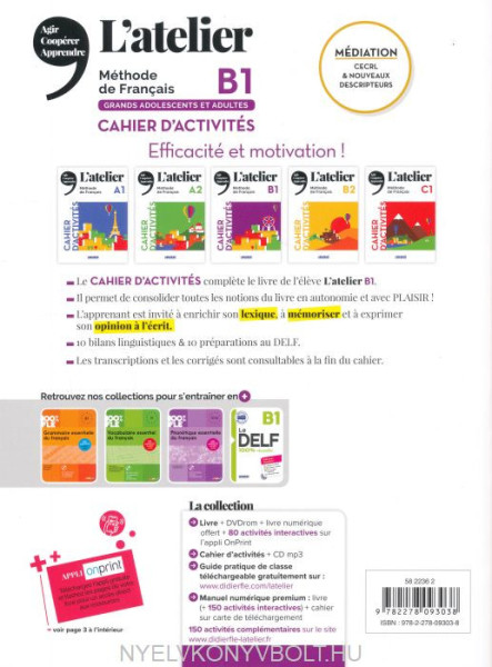 Le CAHIER D’ACTIVITÉS complete le livre de l’éleve L’atelier B1.<Enter>Il permet de consolider toutes les notions du livre en autonomie et avec PLAISIR !<Enter>
