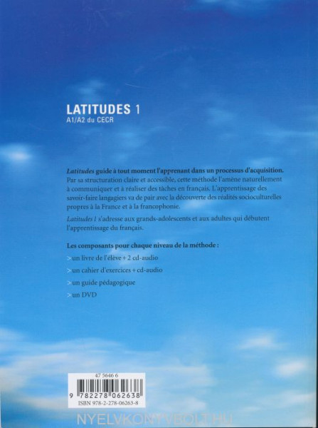 Par sa structuration claire et accessible, cette méthode l'amene naturellement a communiquer et a réaliser des tâches en français. L'apprentissage des savoir-faire langagiers va de pari avec la découverte des réalités socioculturelles propres a la France et a la Francophonie. Latitudes 1 s'adresse aux grands adolescents et aux adultes qui débutent l'apprentissage du français.