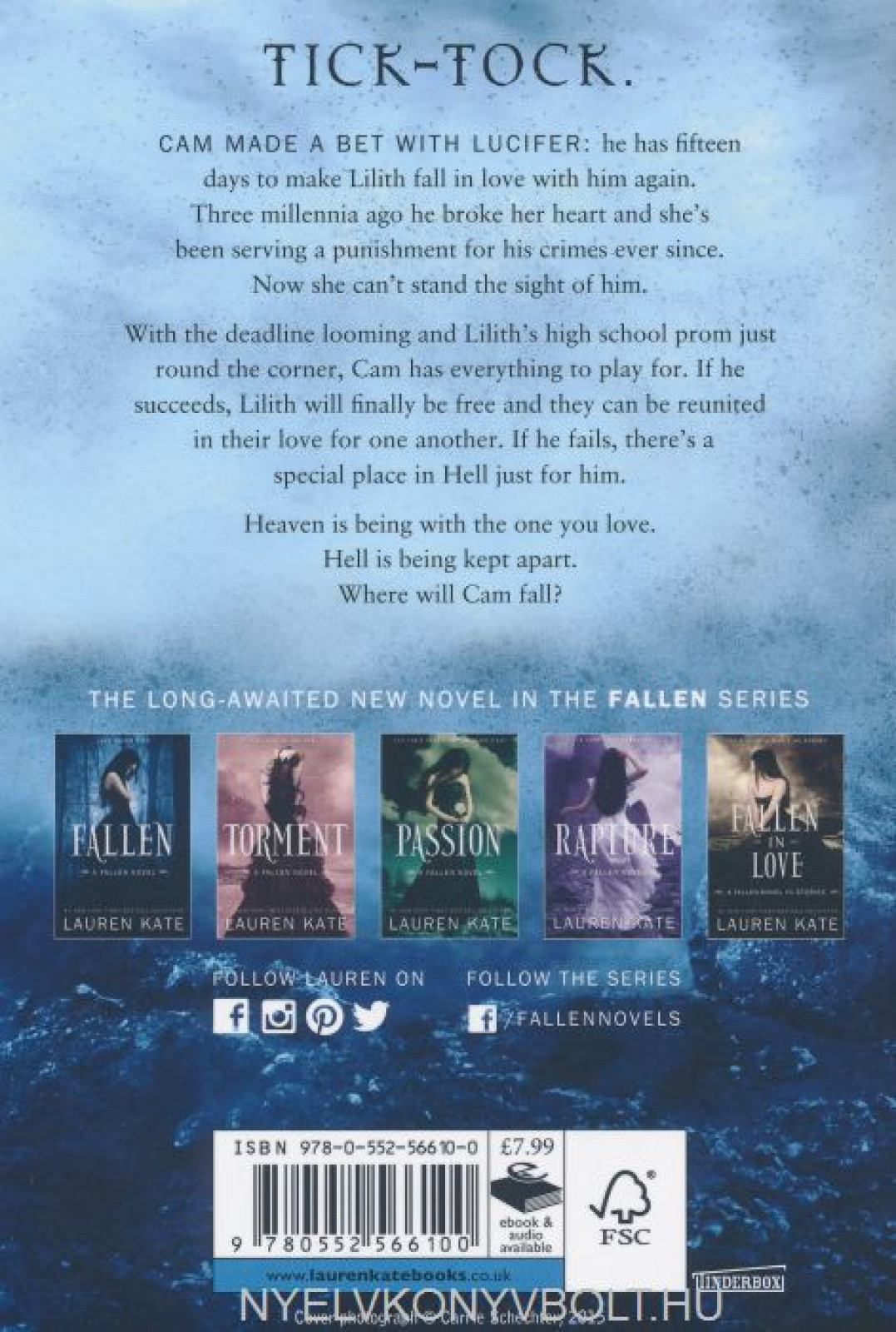 High school can be hell. Cam knows what it's like to be haunted. He's spent more time in Hell than any angel ever should. And his freshest Hell is high school, where Lilith, the girl he can't stop loving, is serving out a punishment for his crimes. Cam made a bet with Lucifer: he has fifteen days to convince the only girl who really matters to him to love him again. If he succeeds, Lilith will be allowed back into the world, and they can live their lives together. But if he fails ...there's a special place in Hell just for him. Tick-tock.