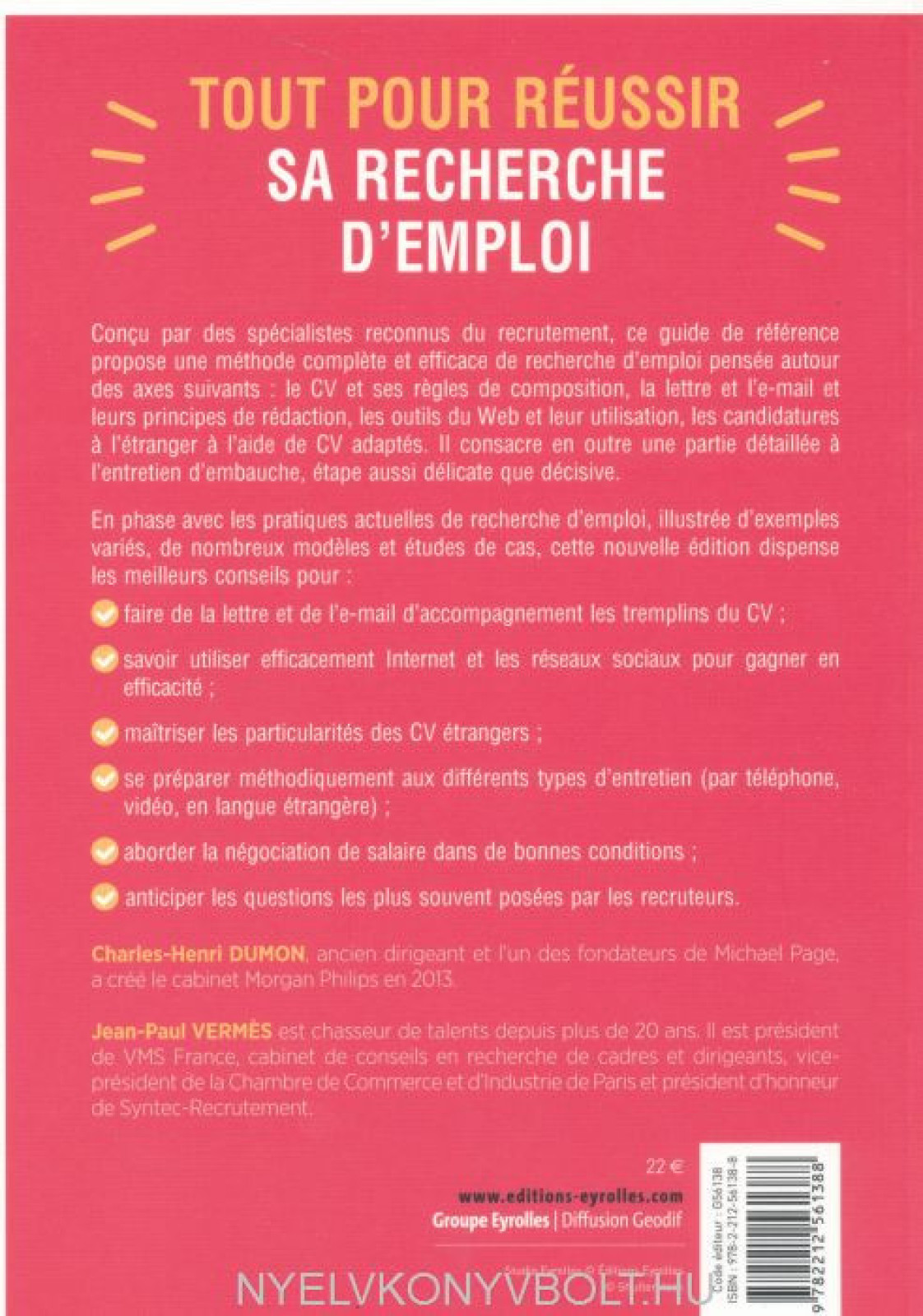 Conçu par des spécialistes reconnus du recrutement des cadres, ce guide de référence propose une méthode complete de recherche d'emploi.