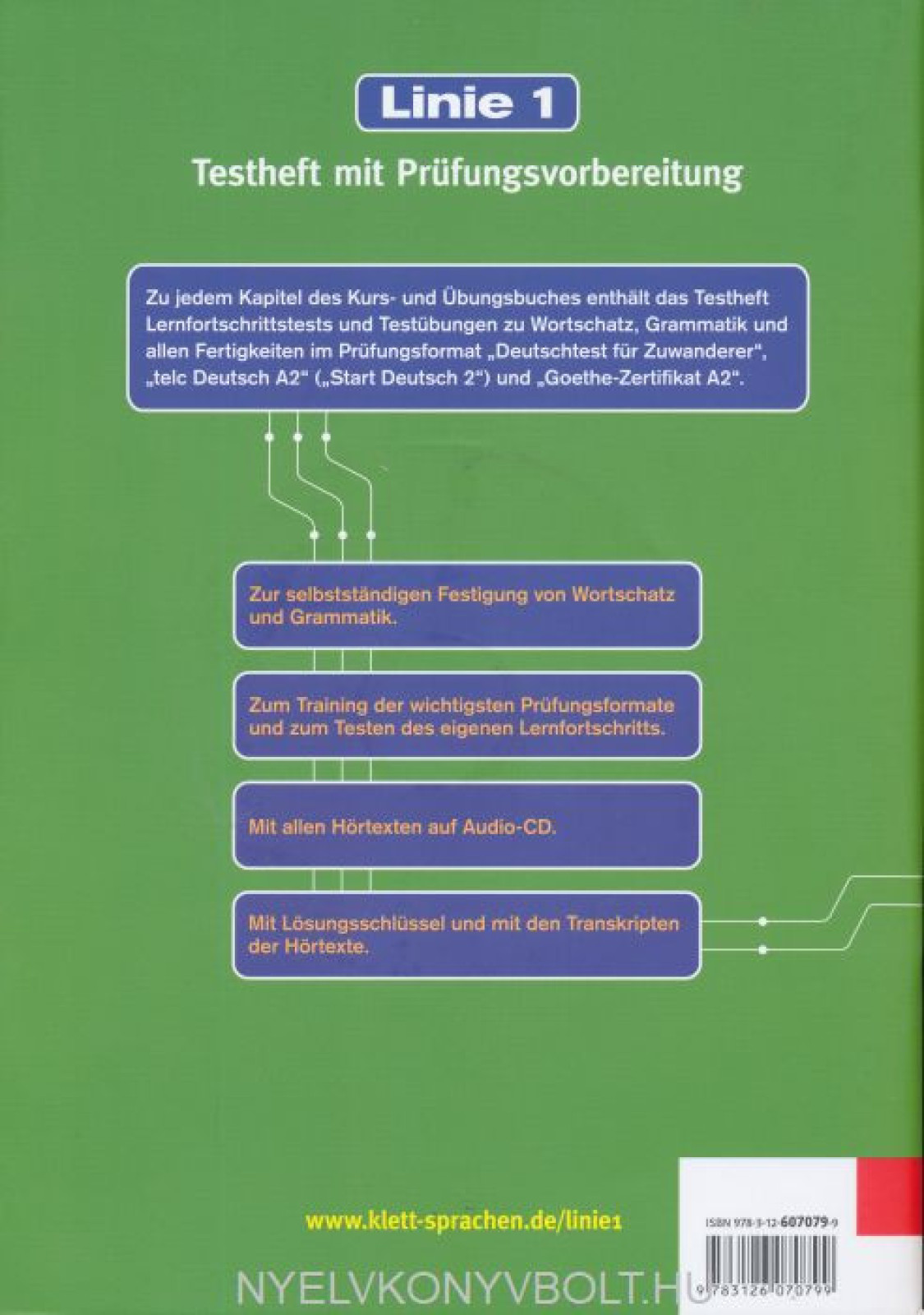 Das Testheft enthält Tests zu jedem Kapitel des Kurs- und Übungsbuchs Linie 1 A2. Es bereitet auf die Prüfungen Deutsch-Test für Zuwanderer, telc Deutsch A2 (Start Deutsch 2) und Goethe-Zertifikat A2 vor. Mit Audio-CD.