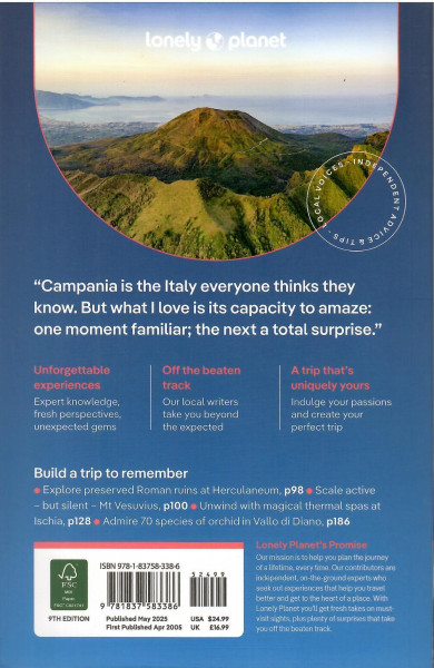 Discover Naples, Pompeii & the Amalfi Coast's most popular experiences and best kept secrets from taking a glass-bottom boat to the sunken underwater ruins of the ancient Roman city of Aenaria, to heading to the idyllic Vigne di Raito for a relaxed vineyard picnic, and visiting Positano's myriad of colourful boutiques selling souvenirs and beachwear.Build a trip to remember with Lonely Planet's Naples, Pompeii & the Amalfi Coast travel guide:Our classic guidebook format contains the most comprehensive level of information for planning multi-week tripsAll-new structure and design that's easy to use so you can navigate Naples, Pompeii & the Amalfi Coast effortlesslyExciting itineraries help you create your perfect adventure with suggestions for extended journeys, day trips, walking tours and activity-led excursionsExpert local recommendations on eating, drinking, nightlife, shopping, accommodation, festivals, when to go and moreVibrant photography and maps including a pull-out map of Naples