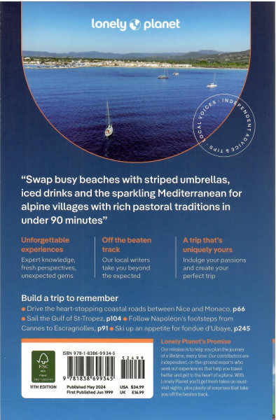 iscover popular and off the beaten track experiences from sipping delicious red wines at Châteauneuf-du-Pape to searching for dolphins on a 16th-century sailing boat in St-Jean-Cap-Ferrat, to wandering the World Heritage listed streets of Nice.Builda trip to remember with Lonely Planet's Provence & the Côte d'Azur travel guide:Our classic guidebook format provides you with the most comprehensive level of information for planning multi-week tripsUpdated with an all new structure and design soyou can navigate Provence & the Côte d'Azur and connect experiences together with ease