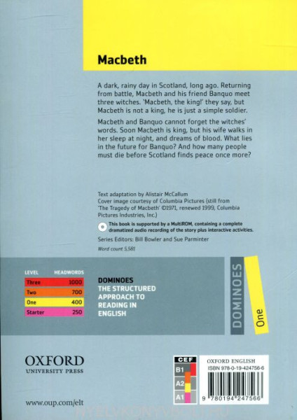 Returning from battle, Macbeth and his friend Banquo meet three witches. 'Macbeth, the king!' they say, but Macbeth is not a king, he is just a simple soldier. Macbeth and Banquo cannot forget the witches' words. Soon Macbeth is king, but his wife walksin her sleep at night, and dreams of blood. What lies in the future for Banquo? And how many people must die before Scotland finds peace once more?