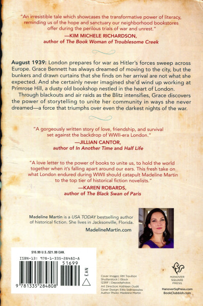 And she certainly never imagined she'd wind up working at Primrose Hill, a dusty old bookshop nestled in the heart of London.Through blackouts and air raids as the Blitz intensifies, Grace discovers the power of storytelling to unite her community in ways she never dreamed--a force that triumphs over even the darkest nights of the war.