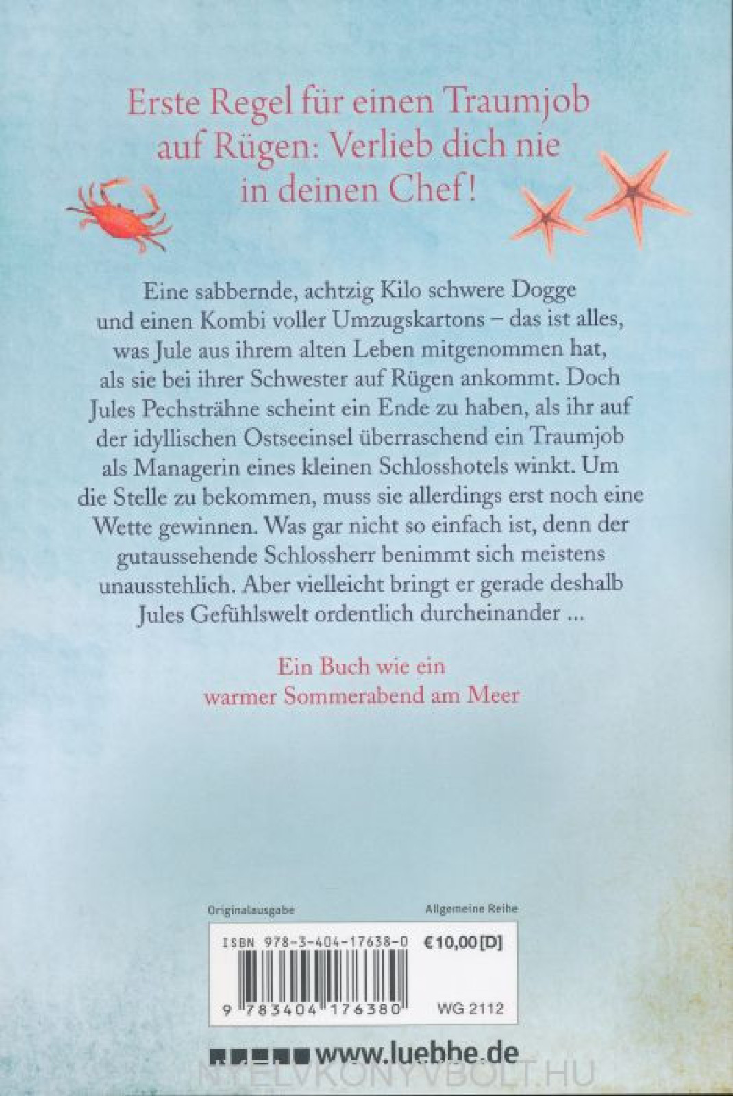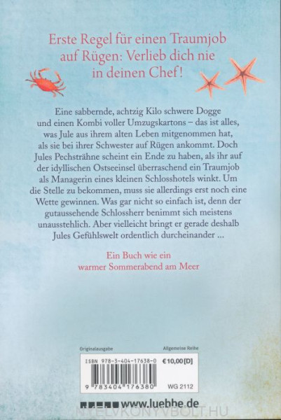 Eine sabbernde, achtzig Kilo schwere Dogge und einen Kombi voller Umzugskartons - das ist alles, was Jule aus ihrem alten Leben mitgenommen hat, als sie bei ihrer Schwester auf Rügen ankommt. Doch Jules Pechsträhne scheint ein Ende zu haben, als ihr aufder idyllischen Ostseeinsel überraschend ein Traumjob als Managerin eines kleinen Schlosshotels winkt. Um die Stelle zu bekommen, muss sie allerdings erst noch eine Wette gewinnen. Was gar nicht so einfach ist, denn der gutaussehende Schlossherr benimmtsich meistens unausstehlich. Aber vielleicht bringt er gerade deshalb Jules Gefühlswelt ordentlich durcheinander.