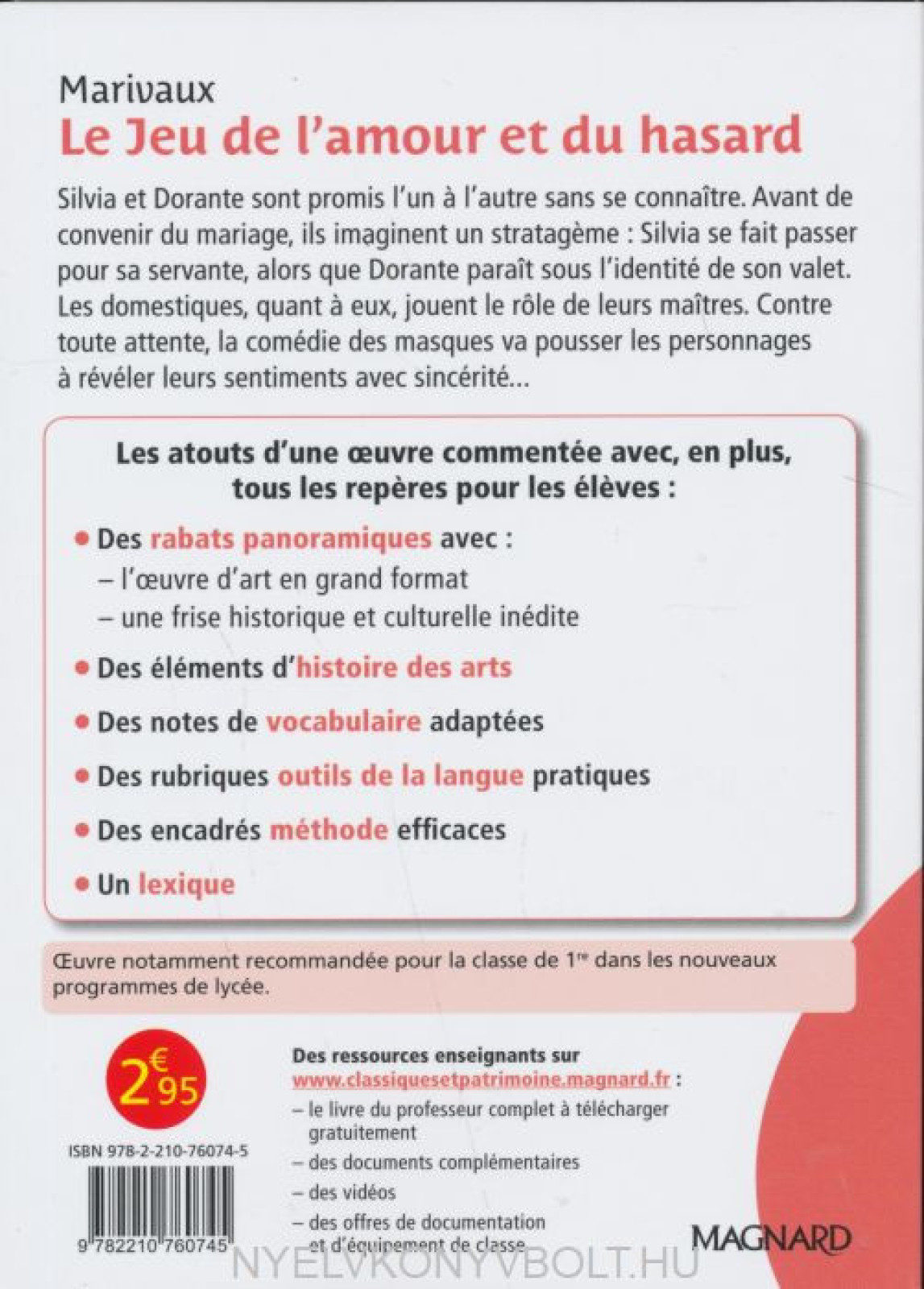 Avec en plus, dans cette édition : - le texte intégral et des notes de bas de page - une présentation de Marivaux et de son époque - des séances thématiques avec des questionnaires progressifs - des rubriques Patrimoine et Histoire des arts, pour enrichir la culture des éleves - un grand nombre de documents iconographiques exploités - des questions de grammaire, d’orthographe et de vocabulaire - des encadrés Méthode - un lexique adapté a l’ouvre