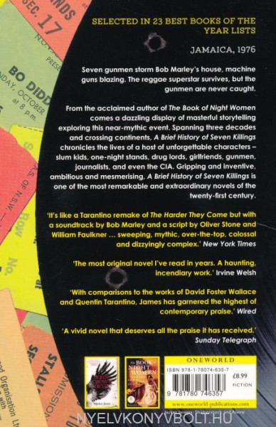 From the acclaimed author of The Book of Night Women comes a dazzling display of masterful storytelling exploring this near-mythic event. Spanning three decades and crossing continents, A Brief History of Seven Killings chronicles the lives of a host ofunforgettable characters – slum kids, drug lords, journalists, prostitutes, gunmen and even the CIA. Gripping and inventive, ambitious and mesmerising, A Brief History of Seven Killings is one of the most remarkable and extraordinary novels of the twenty-first century.
