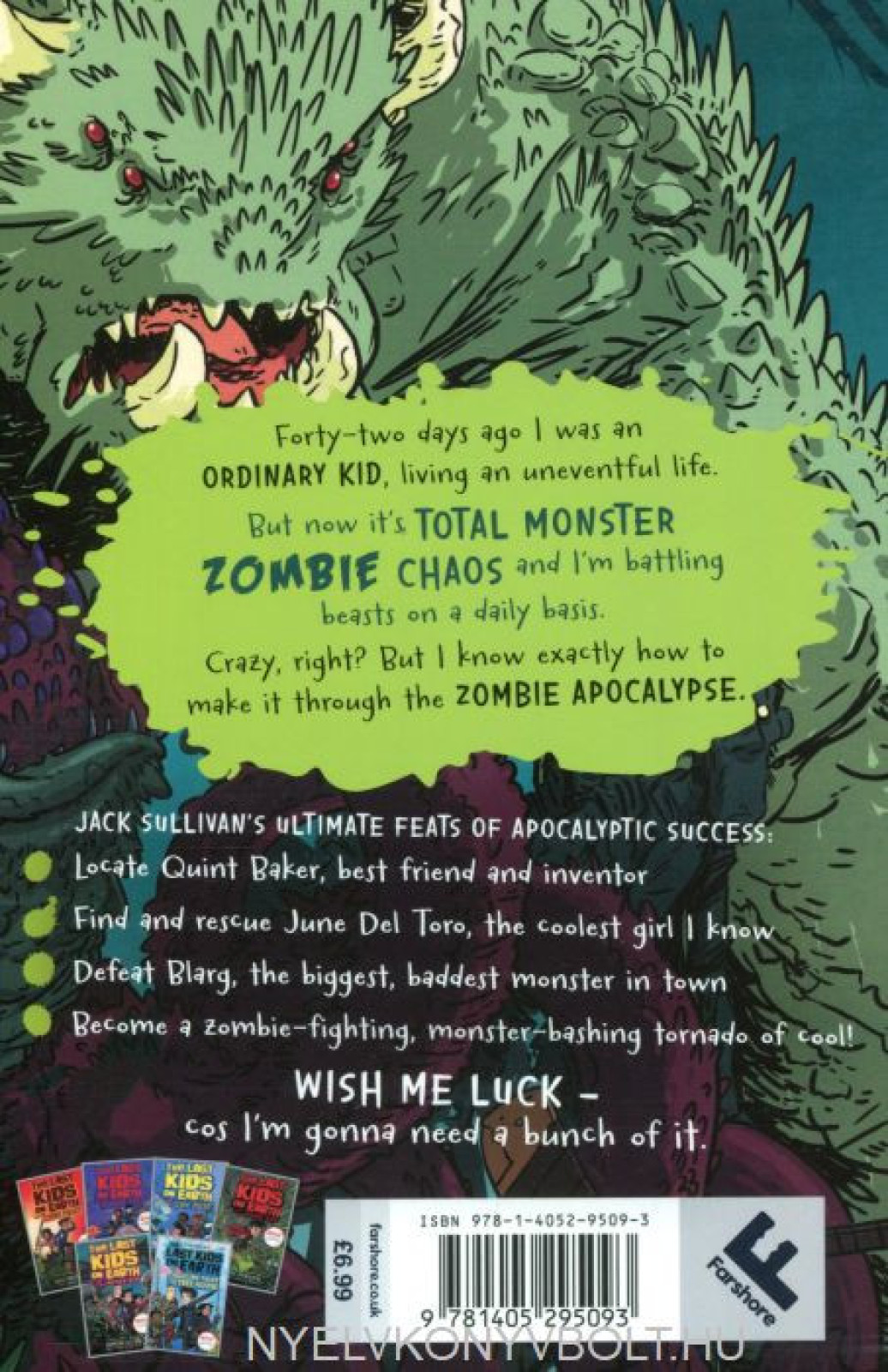 Meet Jack Sullivan, self-described as a late-blooming, slow-developing 13-year-old who has so far survived the zombie apocalypse by hiding out in his treehouse. Overnight Jack’s life has become like the plot of a video game and he has come up with his own ULTIMATE FEATS OF APOCALYPTIC SUCCESS:· Locate Quint Baker, best friend and inventor· Find and rescue June Del Toro, his secret love interest· Defeat Blarg, the biggest, baddest monster in town· Become a zombie-fighting, monster-bashing tornado of cool!The Simpsons meets The Walking Dead in the first book of a hilarious new monster adventure series. Fans of Wimpy Kid, Tom Gates, Barry Loser and Dogman will love accompanying Jack on his mission to become the post-apocalyptic action hero.With hilarious, action-filled illustrations from Douglas Holgate bringing the story to life on every page, The Last Kids on Earth will captivate even the most reluctant readers. Perfect for zombie-hunters of 8 years and upwards.