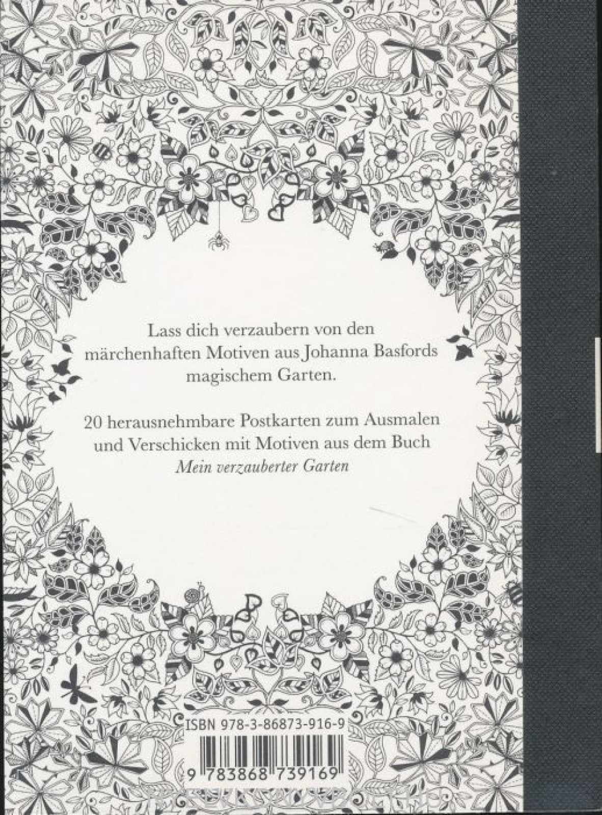 20 herausnehmbare Postkarten zum Ausmalen, Entspannen und Verschicken mit Motiven aus dem Bestseller Mein verzauberter Garten.