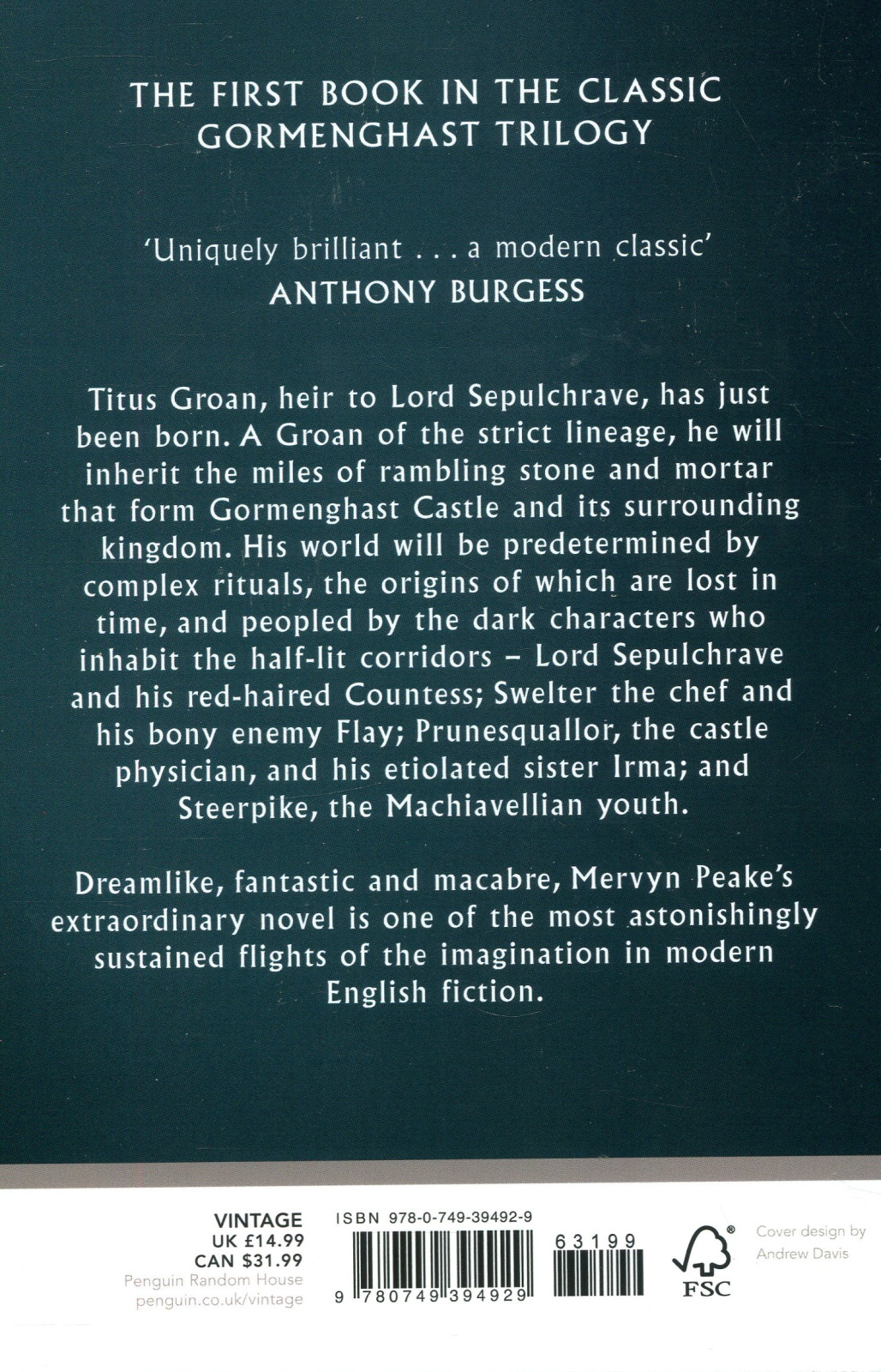 As the first novel opens, Titus, heir to Lord Sepulchrave, has just been born: he stands to inherit the miles of rambling stone and mortar that stand for Gormenghast Castle. Inside, all events are predetermined by a complex ritual, lost in history, understood only by Sourdust, Lord of the Library. There are tears and strange laughter; fierce births and deaths beneath umbrageous ceilings; dreams and violence and disenchantment contained within a labyrinth of stone.