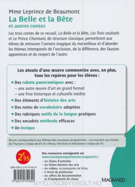 Les trois contes de ce recueil, La Belle et la Bete, Les Trois souhaits et Le Prince Charmant, de structure classique, permettront aux éleves de retrouver l'univers magique du merveilleux et d'aborder les themes intemporels de l'exclusion, de la différence, des fausses apparences et du respect de l'autre.