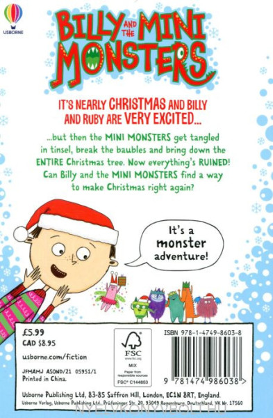 Billy has asked Santa to bring presents for his Mini Monsters and they're very excited too... until they try to help with the decorating and bring down the ENTIRE Christmas tree. Now the baubles are broken, the fairy is squashed and Billy's mother is feeling sad. Can the Mini Monsters make Christmas right again? And will Santa still come to them?