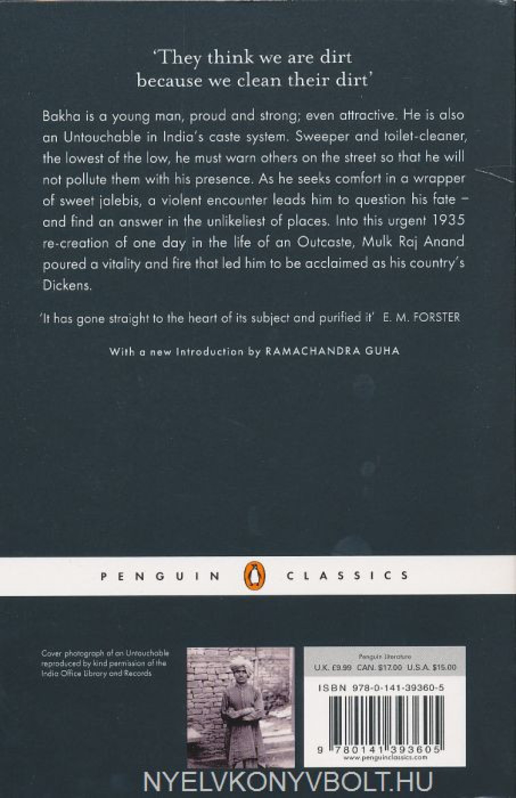 Bakha is a proud and attractive young man, yet none the less he is an Untouchable - an outcast in India's caste system. It is a system that is even now only slowly changing and was then as cruel and debilitating as that of apartheid. Into this vivid re-creation of one day in the life of Bakha, sweeper and toilet-cleaner, Anand pours a vitality, fire and richness of detail that earn his place as one of the twentieth century's most important Indian writers.