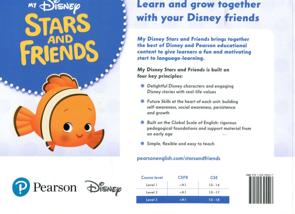 The perfect combination of delightful Disney characters and stories with real-life values and contextsThis pre-primary English course is built on rigorous pedagogical foundations and helps to develop Future Skills, including self and social awareness,persistence and growth from an early age.My Disney Stars and Friends is simple, flexible and easy to teach with a comprehensive digital offering for every teaching scenario. There are various options and pathways through the material so teachers cantailor their approach to both their learners’ needs and specific teaching contexts.Disney characters are instantly recognizable and help establish a known context for new language, making children feel safe and comfortable. Each unit focuses on a different set of characters, giving the course a broad appeal and keeping the content fresh and exciting.