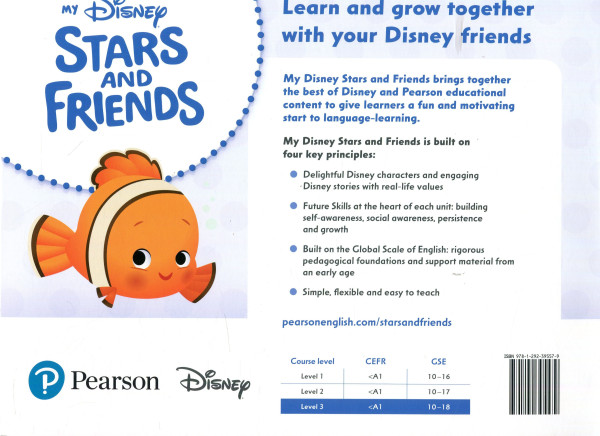 The perfect combination of delightful Disney characters and stories with real-life values and contextsThis pre-primary English course is built on rigorous pedagogical foundations and helps to develop Future Skills, including self and social awareness,persistence and growth from an early age.My Disney Stars and Friends is simple, flexible and easy to teach with a comprehensive digital offering for every teaching scenario. There are various options and pathways through the material so teachers cantailor their approach to both their learners’ needs and specific teaching contexts.Disney characters are instantly recognizable and help establish a known context for new language, making children feel safe and comfortable. Each unit focuses on a different set of characters, giving the course a broad appeal and keeping the content fresh and exciting.