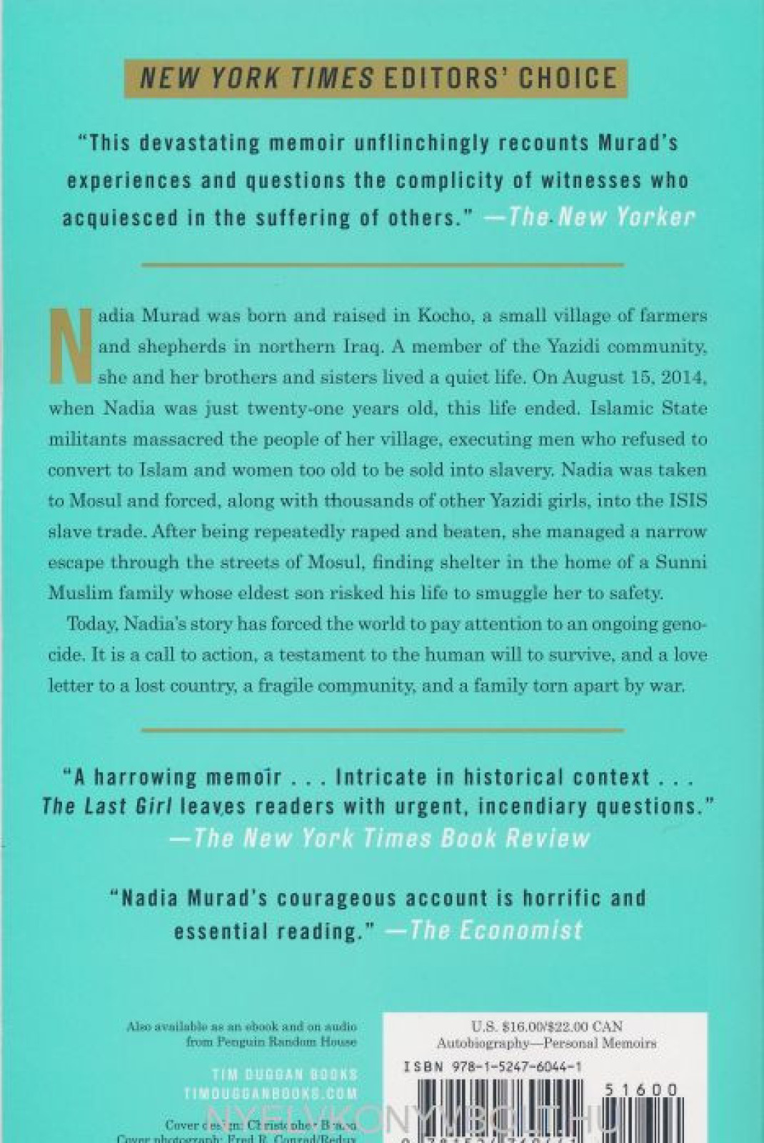 Nadia Murad was born and raised in Kocho, a small village of farmers and shepherds in northern Iraq. A member of the Yazidi community, she and her brothers and sisters lived a quiet life. Nadia had dreams of becoming a history teacher or opening her ownbeauty salon.