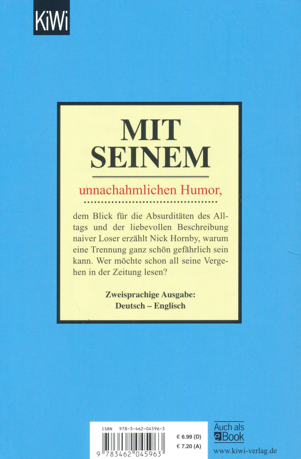 Dass Elaine das ganz anders sieht und Charlie an allem die Schuld gibt, erfährt er aus der Zeitung, für die Elaine schreibt: In einer wöchentlichen Kolumne zerrt sie jegliches Fehlverhalten ihres Exmannes genüsslich in die Öffentlichkeit. Wie soll Charlie jemals wieder eine Frau kennenlernen, wer will mit einem solchen Fiesling schon zusammen sein? Doch da meldet sich eine Frau, der mit ihrem Exmann Ähnliches widerfährt, und die beiden Geschmähten kommen zusammen ... Mit seinem unnachahmlichen Humor, dem Blick für die Absurditäten des Alltags und der liebevollen Beschreibung naiver Loser erzählt Nick Hornby, warum eine Trennung ganz schön gefährlich sein kann.