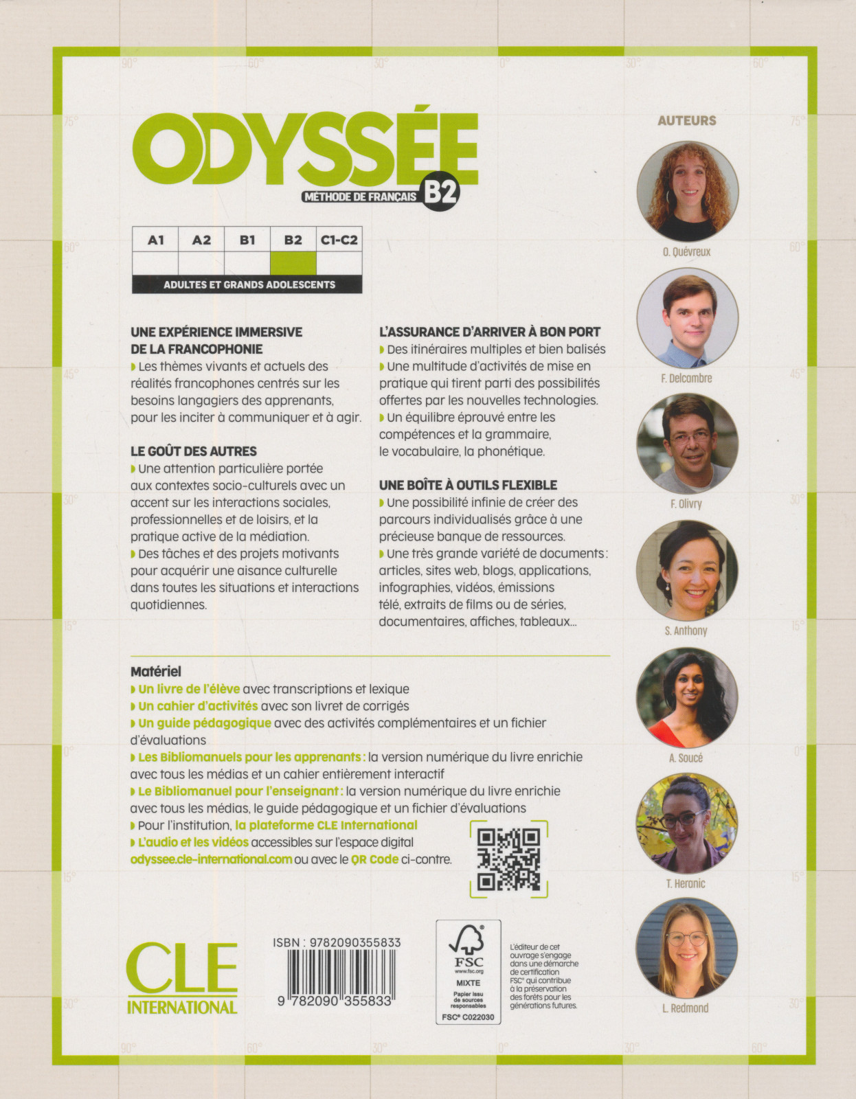 Livre de l'éleve d'Odyssée, méthode de français langue étrangere (FLE) pour grands adolescents et adultes, niveau B2.UNE EXPERIENCE IMMERSIVE DE LA FRANCOPHONIELes themes vivants et actuels des réalités francophones centrés sur les besoins langagiers des apprenants, pour les inciter a communiquer et a agir.LE GOUT DES AUTRESUne attention particuliere portée aux contextes socio-culturels avec un accent sur les interactions sociales, professionnelles et de loisirs, et la pratique active de la médiation.Des tâches et des projets motivants pour acquérir une aisance culturelle dans toutes les situations et interactions quotidiennes.